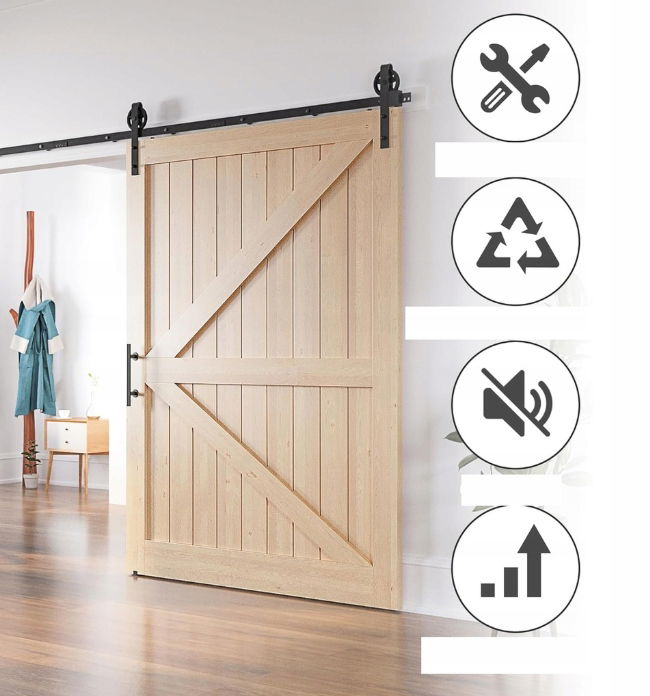 - ✴️[Zestaw do przesuwania drzwi stodołowych o dużej wytrzymałości]: Nasza szyna do drzwi ze stali węglowej jest trwała, ma solidną konstrukcję odporną na odkształcenia i wyginanie. Nylonowe rolki przeszły 100 000 testów, co gwarantuje płynne i ciche przesuwanie.