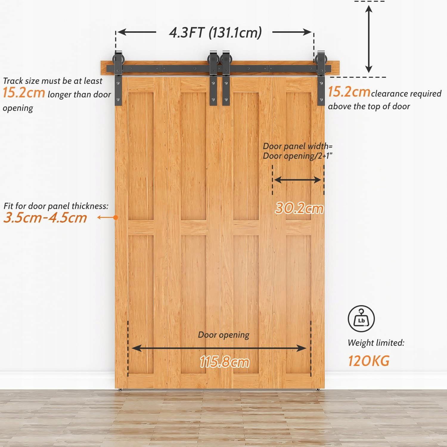 Zestaw okuć SANKEYTEW do drzwi przesuwnych składanych typu barn door to doskonały wybór do wnętrz, gdzie liczy się funkcjonalność i estetyka. Wystarczy 15–20 cm wolnej przestrzeni nad drzwiami, aby cieszyć się płynnym i cichym przesuwaniem. Idealny do salonu, sypialni, biura, garderoby czy kuchni.