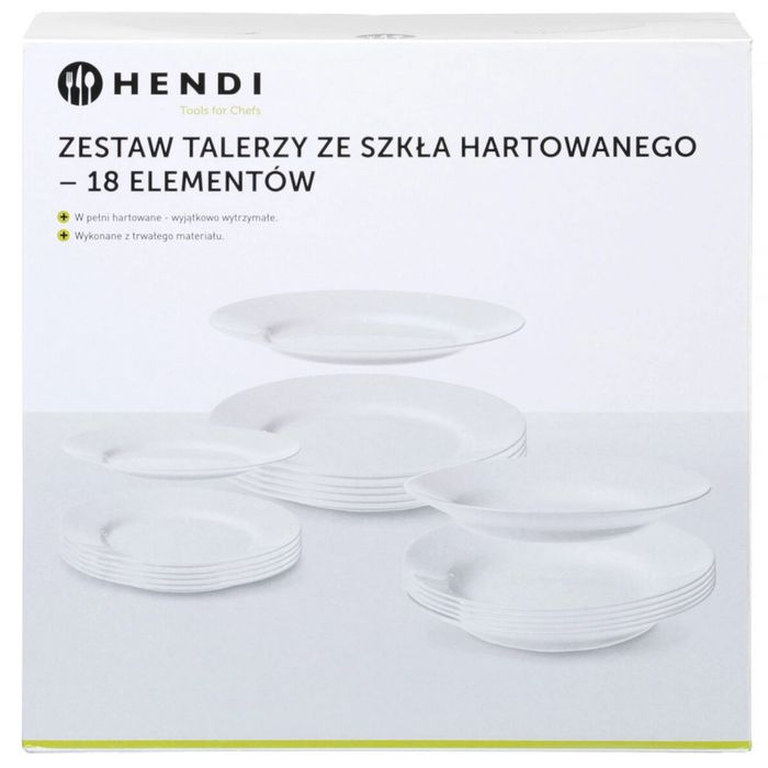 Zestaw talerzy ze szka hartowanego 18 el. - hendi 795224
