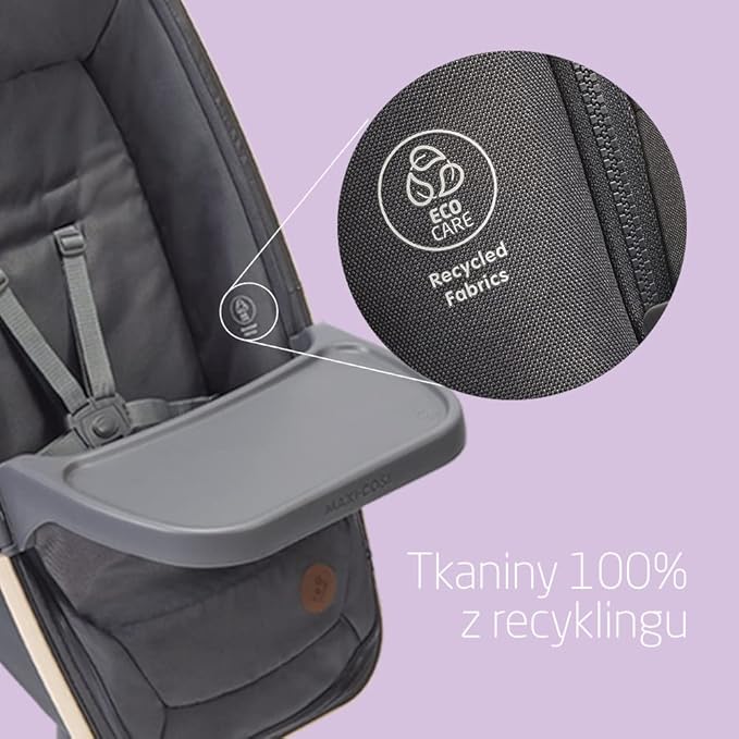 Materiały w 100% pochodzące z recyklingu – Eco Care, w 100% z materiałów pochodzących z recyklingu, dzięki czemu dziecko ma wygodę bez kompromisów w zakresie zrównoważonego rozwoju