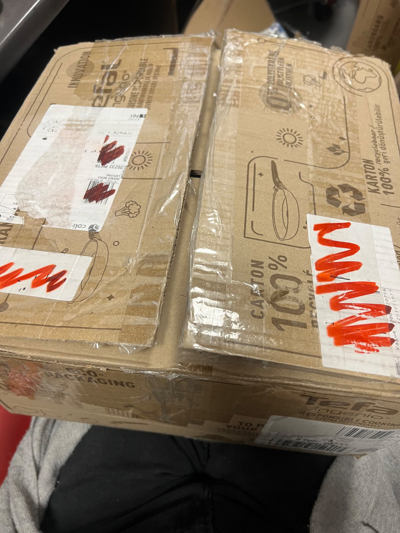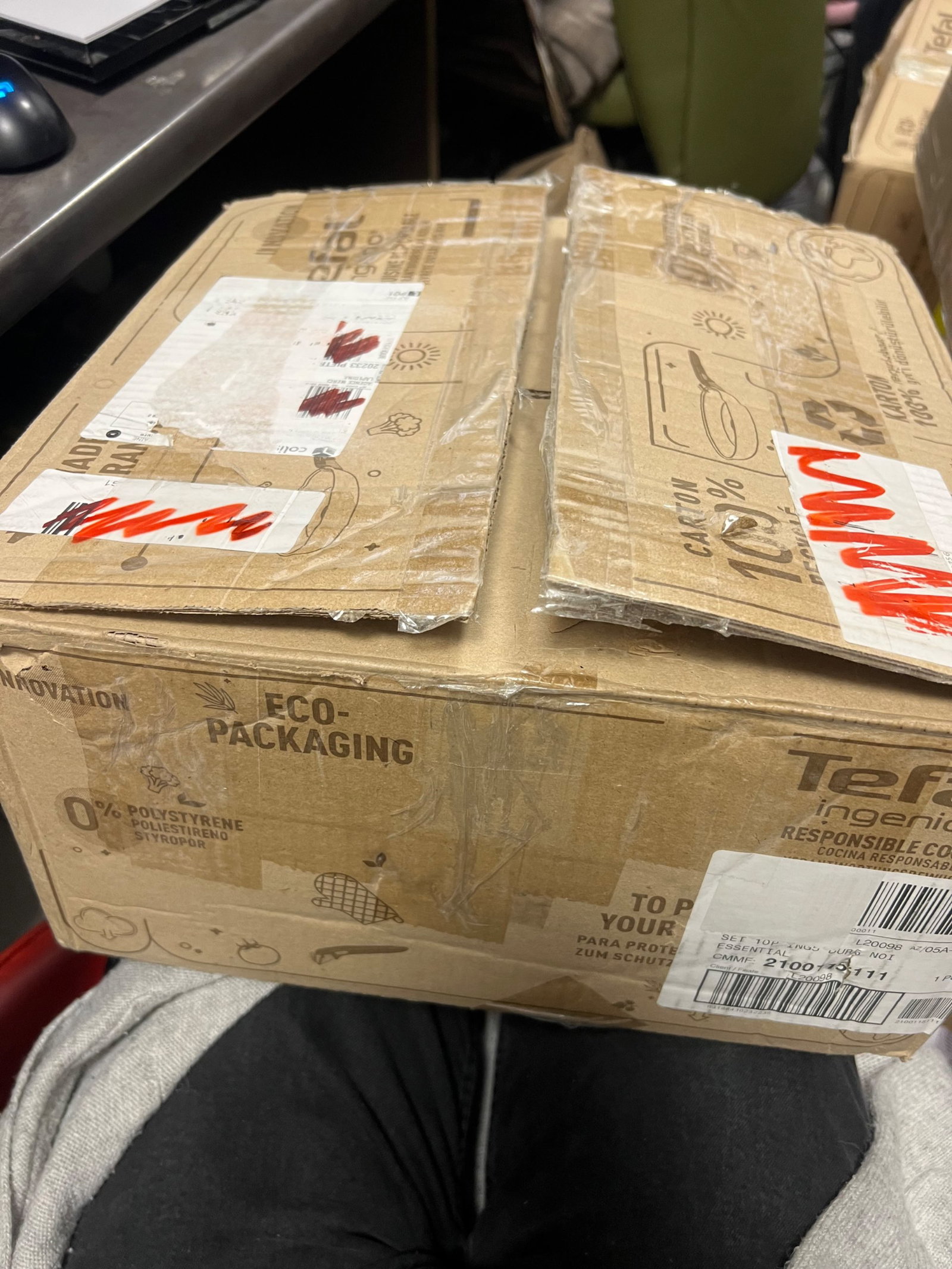 Stan opakowania: Lekko pogniecione, Oklejone taśmą, Naklejona etykieta kurierska