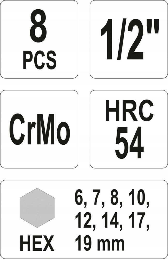 rozmiary: 6, 7, 8, 10, 12, 14, 17, 19 mm