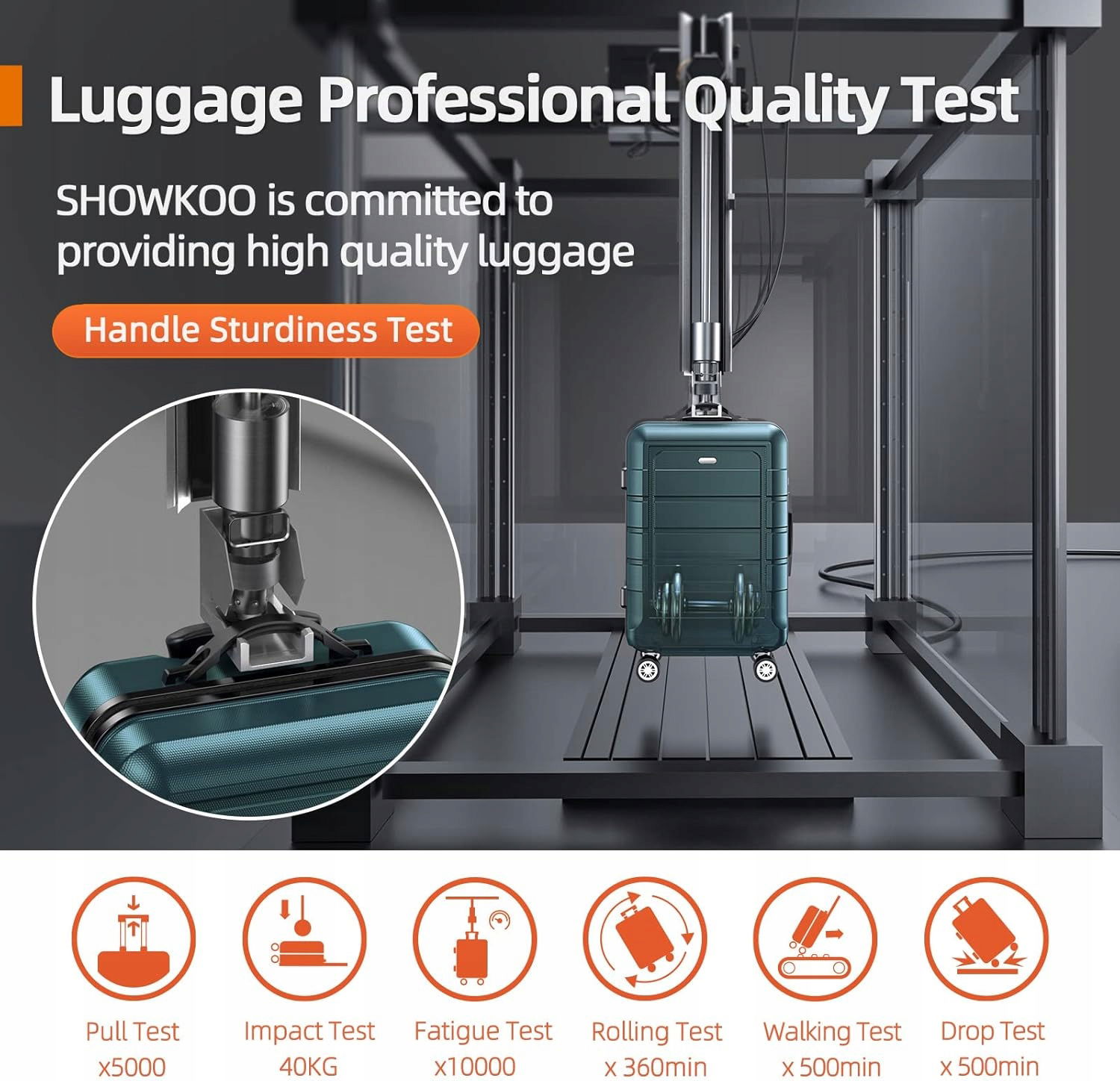 Wytrzymałe zamki i kółka: Nowo ulepszony, wysokiej jakości zamek błyskawiczny i kółka obrotowe 360° wynoszą wytrzymałość walizek SHOWKOO na nowy poziom. Ulepszone, tkane zamki błyskawiczne z zębami łańcuszkowymi zapewniają solidne zamknięcie, zapobiegając rozdarciom. Pogrubione łożyska i miękki TPU tworzą dwurzędowe koła 360°, które są płynnie i cicho pracują. Ta walizka to idealny partner w Twoich podróżach.