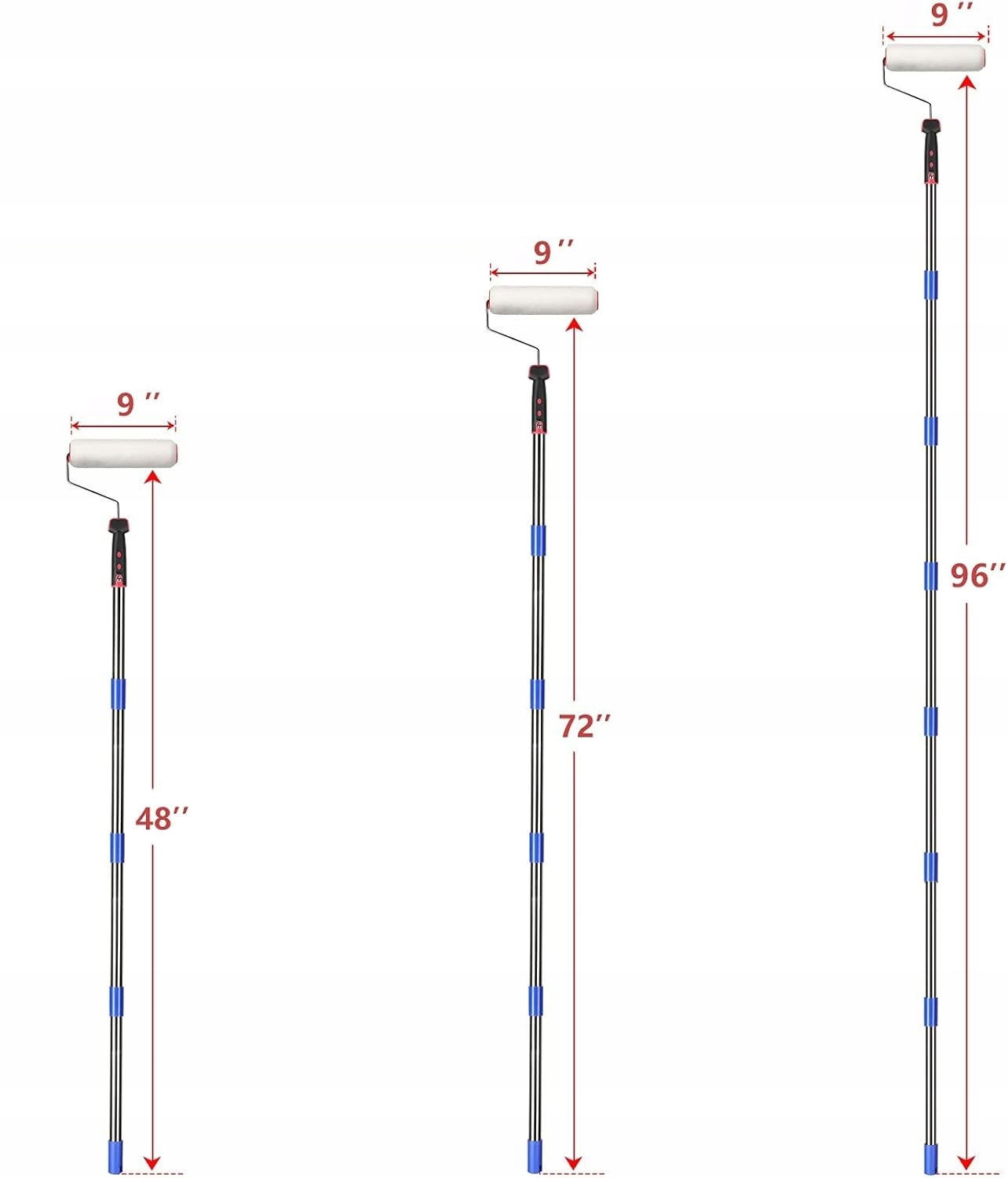 - BRAK DRABINKI: Dzięki rozsuwanemu drążkowi teleskopowemu o długości 70-210 cm, nie potrzebujesz już drabiny, co zwiększa bezpieczeństwo i wygodę malowania wysokich ścian i sufitów. Pręt jest uniwersalny, wykonany ze stali nierdzewnej i można go rozciągać w nieskończoność (do podanej max. długości).