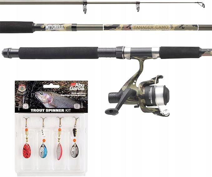 Ten fajnie wyglądający zestaw składa się z wędki spinningowej i kołowrotka spinningowego z hamulcem tylnym w fajnym wzornictwie kamuflażowym. Kołowrotek wędkarski jest dostarczany z szpulą wypełnioną wysokiej jakości żyłką mono. Spinncombo ma całkowitą długość 180 cm, ciężar wyrzutowy 5-15 g. Ten zestaw został zaprojektowany specjalnie do łowienia pstrągów i okoni w stojących wodach i rzekach.