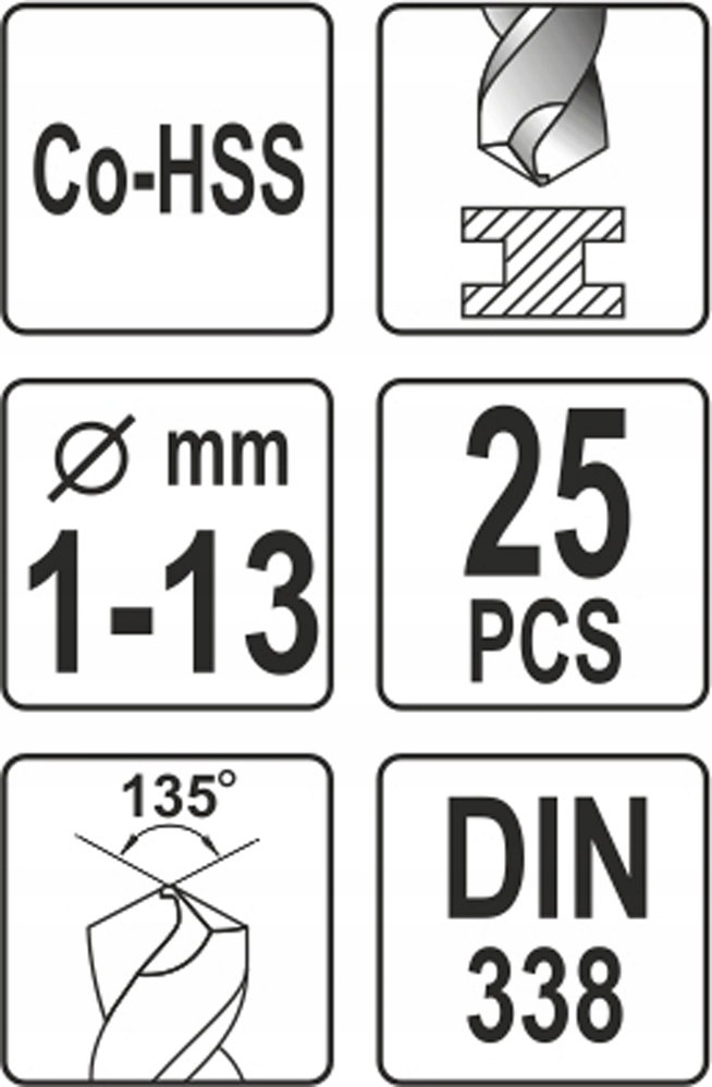 Zestaw wierteł kobaltowych do metalu 25 sztuk marki YATO odpornych na działanie wysokiej temperatury.
