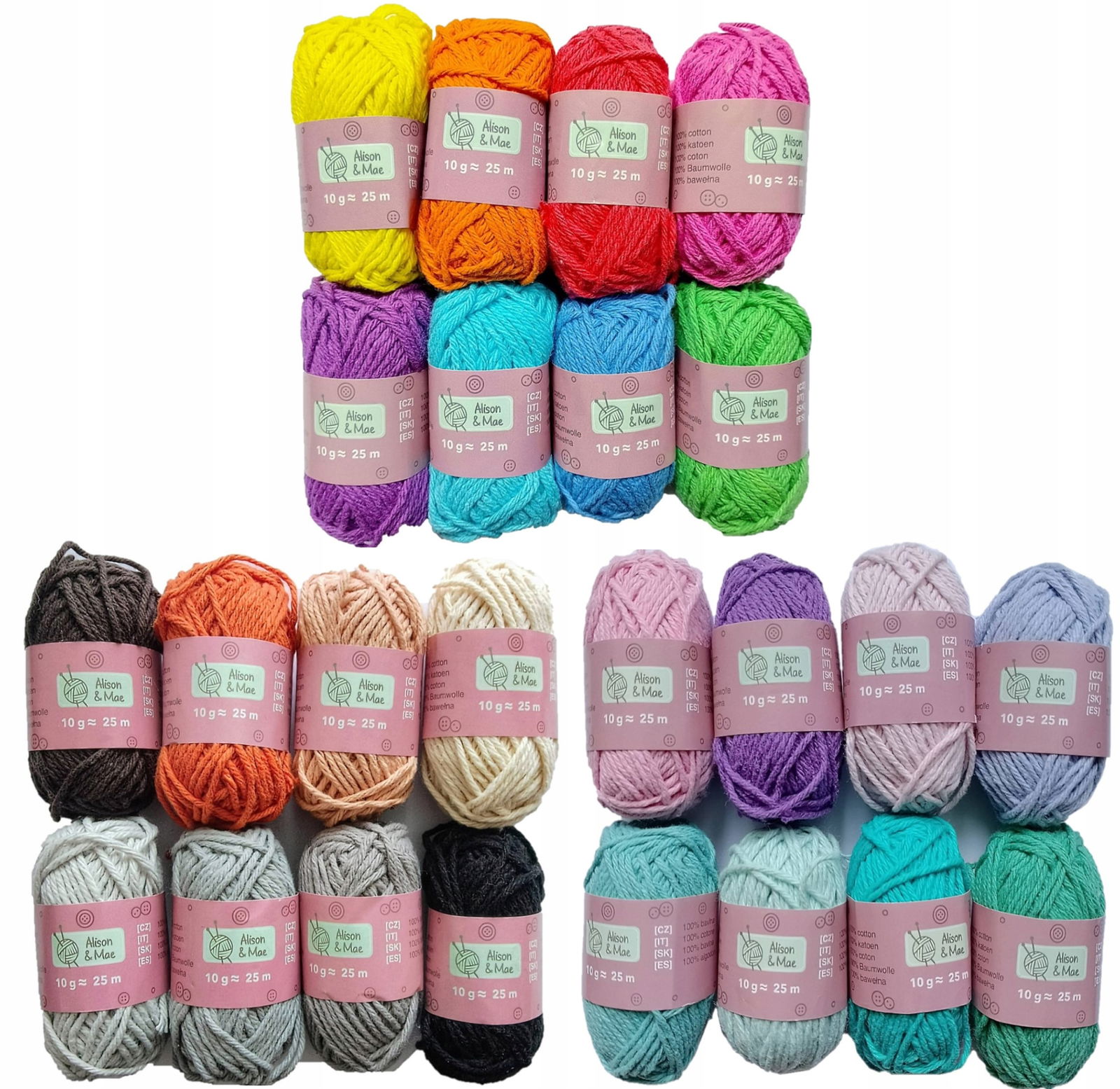 ZESTAW WŁÓCZEK BAWEŁNIANYCH DO SYDEŁKOWANIA WŁÓCZKI NICI 24 szt 600mb