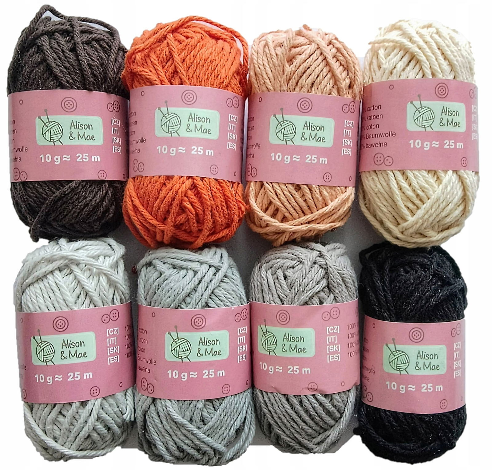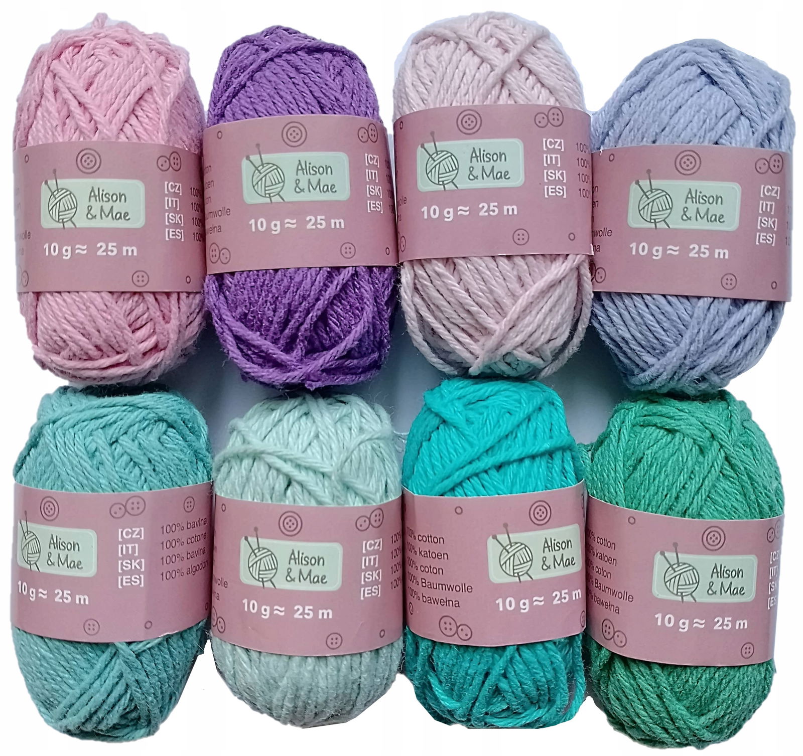 Zalecany rozmiar drutów to 2,5 i 3. Doskonałe na wyroby dla dzieci. Można je prać w pralce w temperaturze do 30 °C. Skład to 100% bawełna. Zestaw włóczek waży 240g (10 g każdy motek).