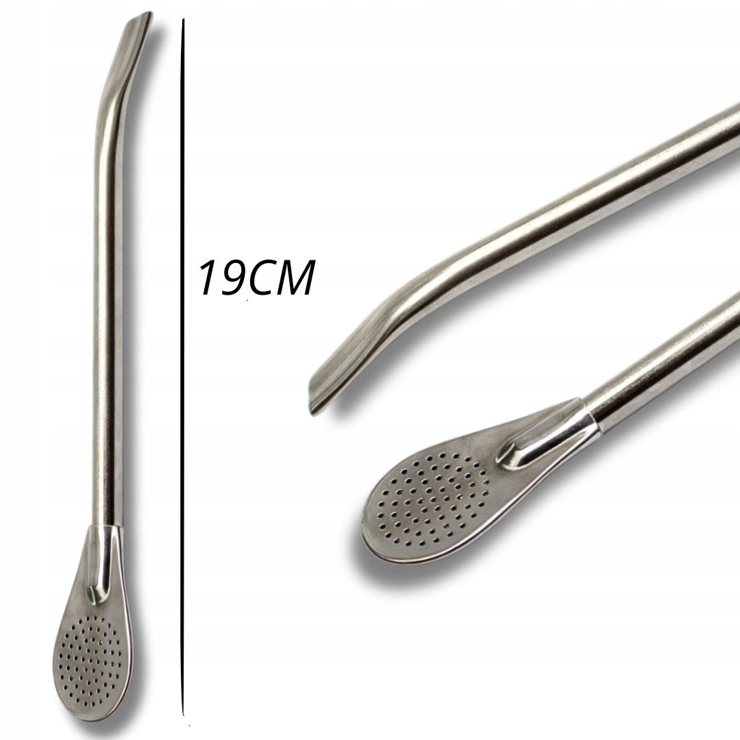 Stylowa, wytrzymała bombilla do yerba mate. Wykonana została ze stali nierdzewnej. Jest lekko wyprofilowana oraz wyposażona w filtr typu łyżeczkowego, filtr ten jest bardzo skuteczny nawet przy najbardziej pylastych yerbach, dlatego bombilla jest odpowiednia zarówno do delektowania się yerbą o małej, jak i dużej zawartości pyłu.