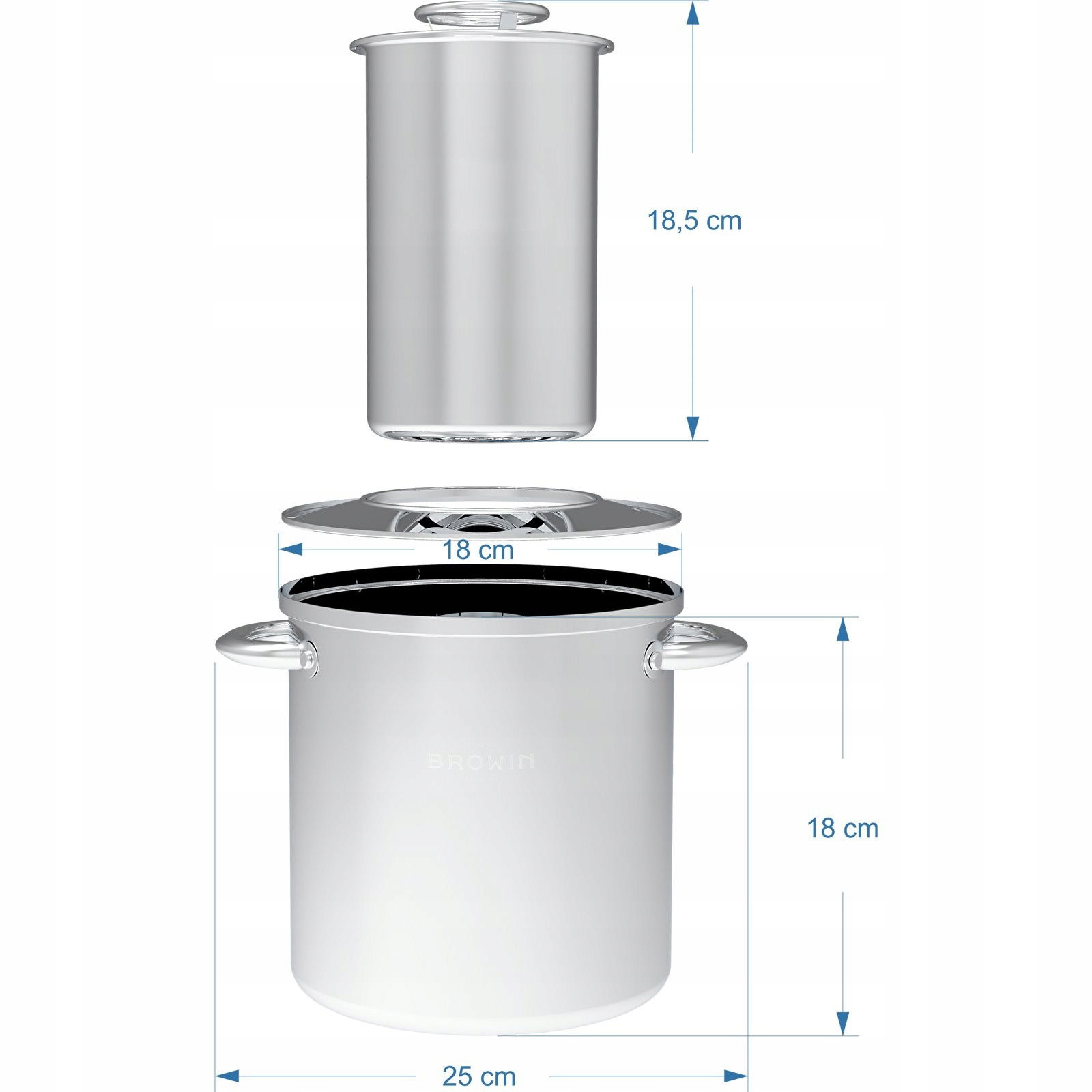 - Innowacyjna budowa – specjalna konstrukcja sprawia, że szynkowar opiera się na kołnierzu i nie dotyka dna garnka, dzięki czemu woda otula szynkowar tworząc tak zwany płaszcz wodny, co sprawia, że przygotowywane dania są soczyste i równomiernie sparzone.