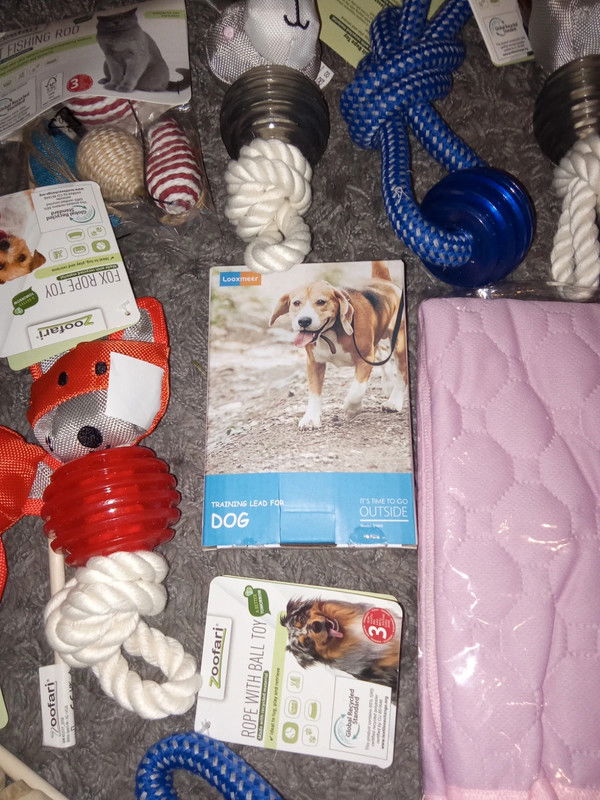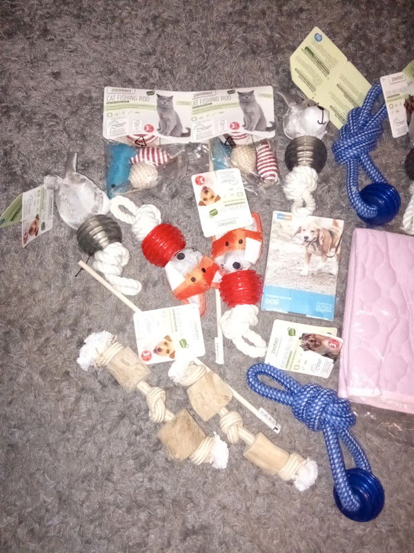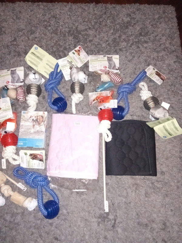 Witam. Na sprzedaż zestaw zabawek i nie tylko dla psa i kota. W zestawie zabawki oraz bardzo dobrej jakości smycz oraz dwie maty. Można negocjować, chce to poprostu sprzedać ☺️
