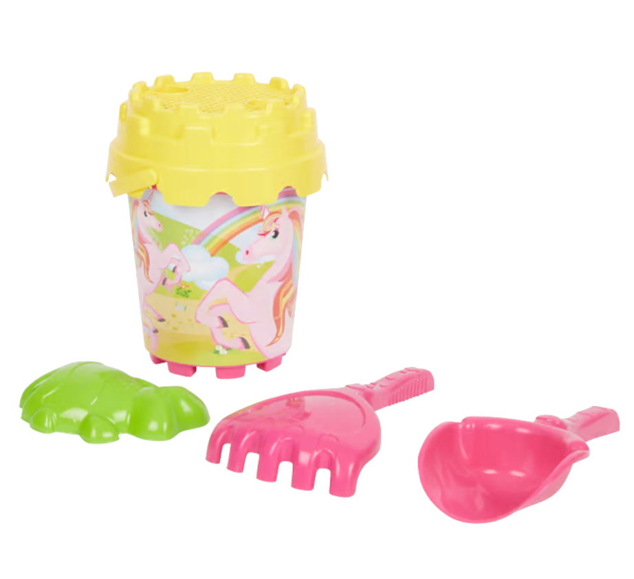 Zabawki do piasku to idealny zestaw do zabawy na plaży, nad jeziorem czy w piaskownicy. Zestaw zapewni Twojemu dziecku wiele godzin kreatywnej zabawy na świeżym powietrzu. Wiaderko z nadrukiem jednorożców z uchwytem doskonale sprawdzi się do przenoszenia piasku i wody.