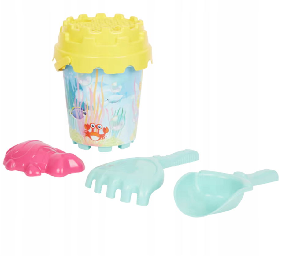 Zabawki do piasku to idealny zestaw do zabawy na plaży, nad jeziorem czy w piaskownicy. Zestaw zapewni Twojemu dziecku wiele godzin kreatywnej zabawy na świeżym powietrzu. Wiaderko z nadrukiem syrenki z uchwytem doskonale sprawdzi się do przenoszenia piasku i wody.