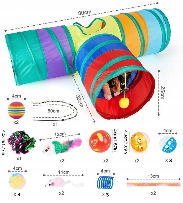 Zestaw Zabawki Dla Kota Ryba Mysz Wędka Duży Tunel Domek dla Kota 24 el XXL