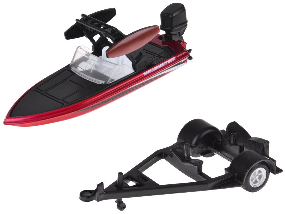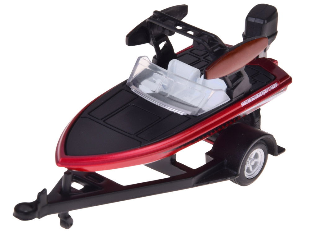 Zestaw i przyczepa z łódką to propozycja, która z pewnością Cię zachwyci. w skali 1:64, utrzymany w czerwonej kolorystyce, prezentuje się imponująco, a przyczepa z elegancką łódką dodaje mu niepowtarzalnego charakteru.