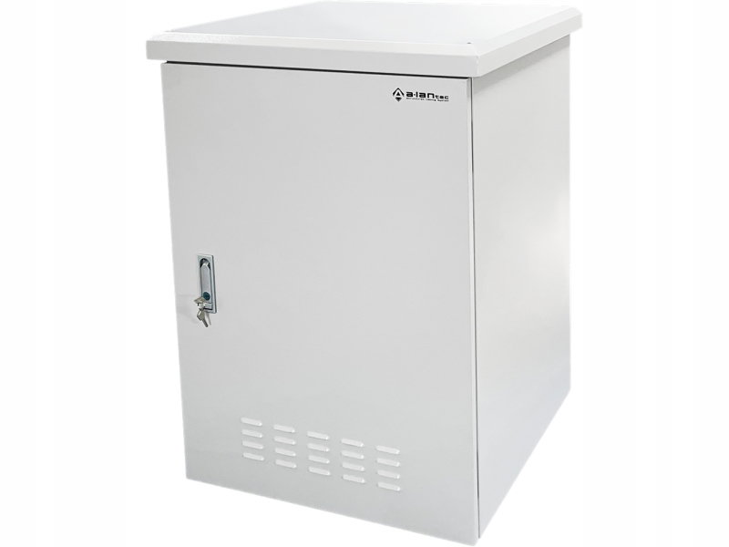 Szafa teletechniczna RACK, wisząca, 19", przeznaczona do zastosowań zewnętrznych. Dostępna w 5 wysokościach użytkowych (6, 9, 12, 15 i 18U), idealna do montażu elementów pasywnych i aktywnych systemów okablowania strukturalnego oraz CCTV w trudnych warunkach atmosferycznych. Szafę montuje się do ściany za pomocą czterech specjalnych kotew znajdujących się w zestawie, co zapewnia stabilność i bezpieczeństwo instalacji. Dodatkowo, dzięki dedykowanemu uchwytowi, istnieje możliwość montażu szafy na słupie, co zwiększa elastyczność zastosowania.