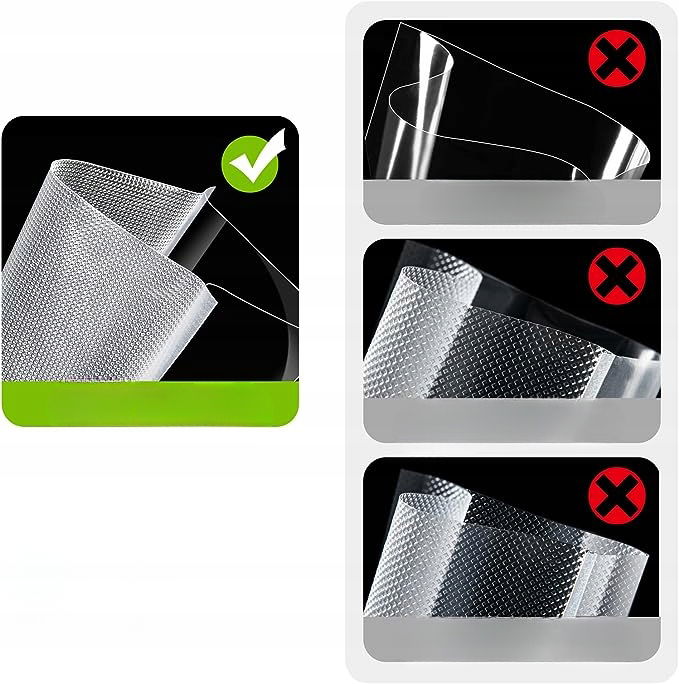 Ta profesjonalna maszyna próżniowa jest wyposażona w tryb suchy i mokry. W porównaniu z maszyną próżniową bez trybu suchego i mokrego. Ta zgrzewarka próżniowa może klasyfikować suchą i wilgotną żywność, aby poprawić świeżość i zapewnić różne efekty próżniowe. Lepiej jest używać profesjonalnego worka próżniowego Bonsenkitchen z głębokimi drogami oddechowymi i dobrym efektem uszczelniającym.