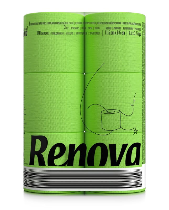 Zielony papier toaletowy Renova to harmonijne połączenie komfortu i naturalnej estetyki. Kolor inspirowany naturą wprowadza świeżość i spokój do każdej łazienki.