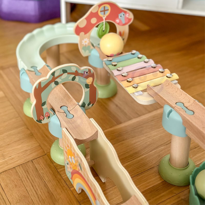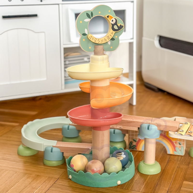 Ta kreatywna zabawka to przepiękny drewniany tor kulkowy, który zachwyca zarówno designem, jak i funkcjonalnością. Dzięki kolorowym rampom, spiralnej zjeżdżalni i elementom muzycznym, maluchy będą miały okazję rozwijać swoją koordynację wzrokowo-ruchową, zdolności manualne oraz kreatywność. Zestaw zawiera piłeczki, dekoracyjne łuki, stabilne podstawki i wiele innych elementów, które sprawią, że każda chwila spędzona przy tej zabawce będzie pełna radości i nauki. To idealny prezent dla dzieci od 18 miesiąca życia, który zachęca do wspólnej zabawy i eksploracji z najbliższymi. Dzięki estetycznemu wykończeniu i bezpiecznej konstrukcji, można mieć pewność, że ta zabawka dostarczy wiele godzin rozwoju i zabawy.