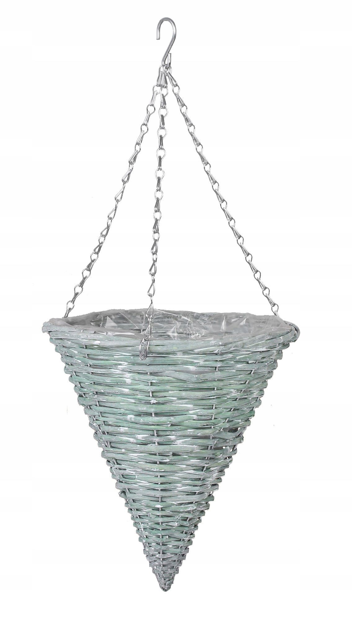 ZIELONY WISZĄCY KOSZ WIKLINOWY STOŻEK Z FOLIĄ NA KWIATY 28x28x32/68 cm