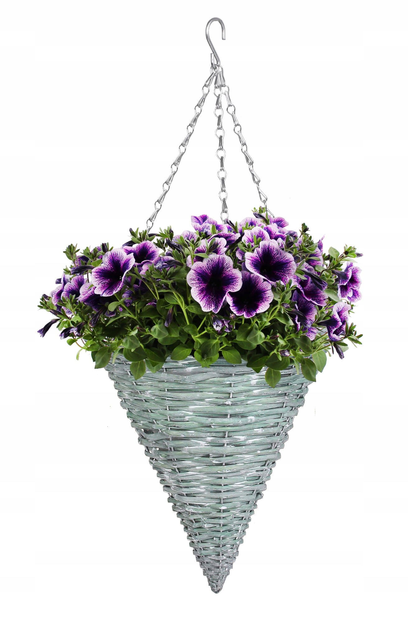 Ten kosz wiszący w kształcie stożka idealnie sprawdzi się w aranżacji ogrodu, balkonu i drzwi wejściowych, czyli tak naprawdę każdego miejsca w otoczeniu Twojego domu, które zechcesz ozdobić wiszącymi kwiatami. Rośliny zwisające w tego typu koszach mają zapewnione idealne warunki do swobodnego rozrostu i kwitnienia, a przy okazji tworzą piękną i pełną uroku ozdobę przydomowej sfery.