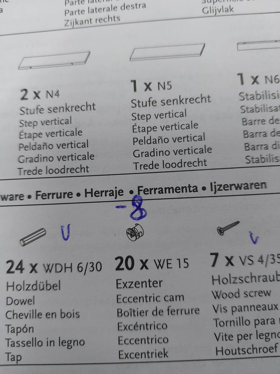 BRAKUJE 8 ŚRUB DO SKRĘCANIA "WE15" ORAZ JEST USZKODZONY JEDEN ELEMENT "N1".