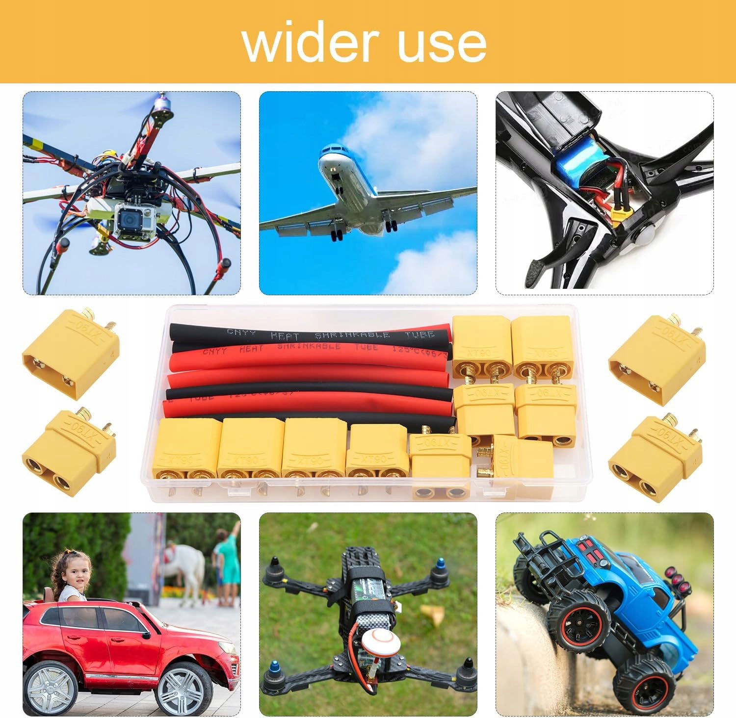 Złącza YIXISI XT90 żółty 5 par z termokurczem do baterii Lipo