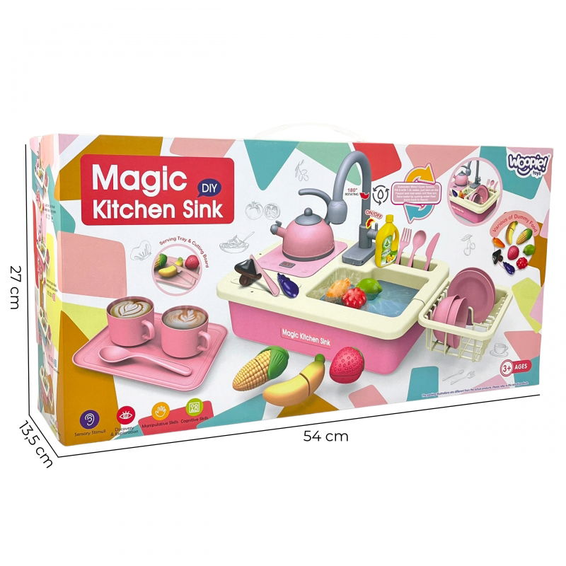Zapewnij swojemu dziecku niezapomniane doświadczenia kulinarno-zmywakowe dzięki Zlewozmywakowi Kuchenka 2w1 od renomowanej marki WOOPIE! Ta realistycznie odwzorowana zabawka pozwala maluchom nauczyć się gotować i zmywać, naśladując dorosłych w zabawny sposób. Kran z prawdziwą wodą, ruchome elementy, jak kurek czy przecinane na pół owoce i warzywa, sprawiają, że maluchy poczują się jak prawdziwi kucharze i pomocnicy przy zmywaniu.
