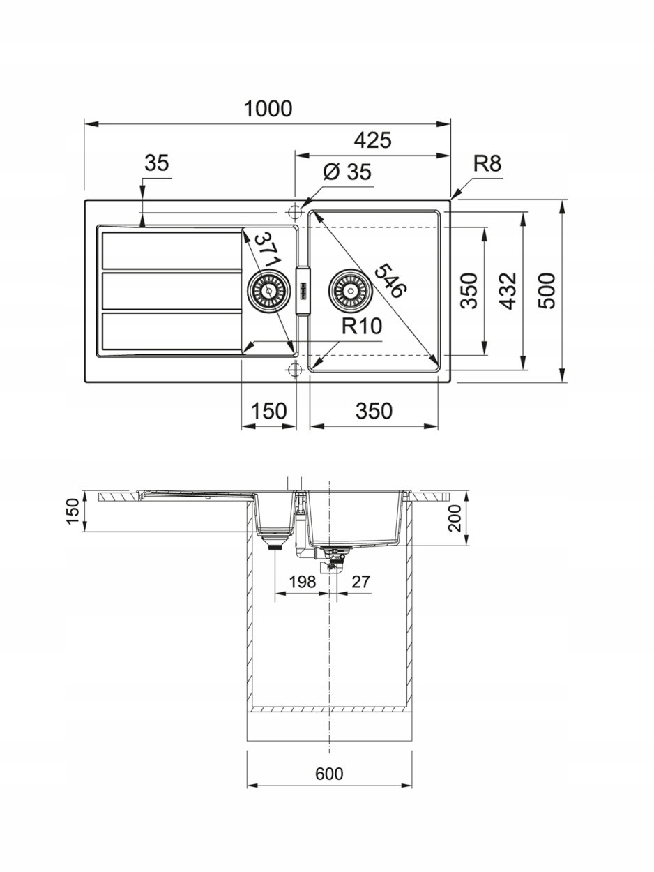 ✅Wymiary zlewozmywaka: 1000 x 500 mm