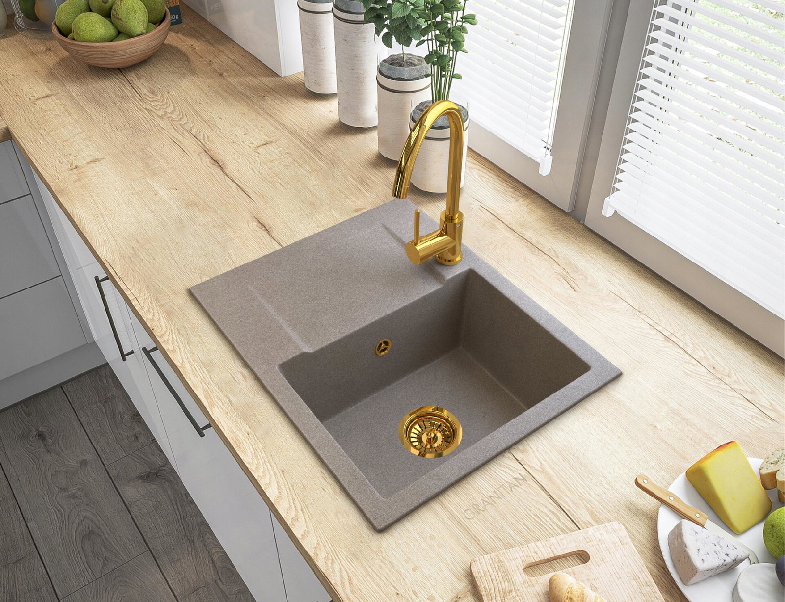 ZLEW GRANITOWY KUCHENNY TOP BATERIA ZŁOTA