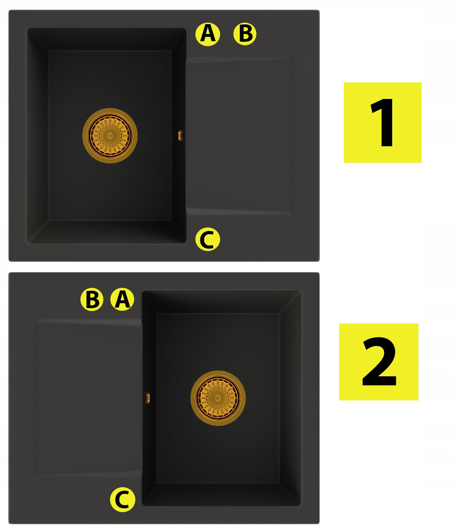 2. ILOŚĆ OTWORÓW W ZLEWOZMYWAKU I MIEJSCE WYKONANIA (A, B, C)