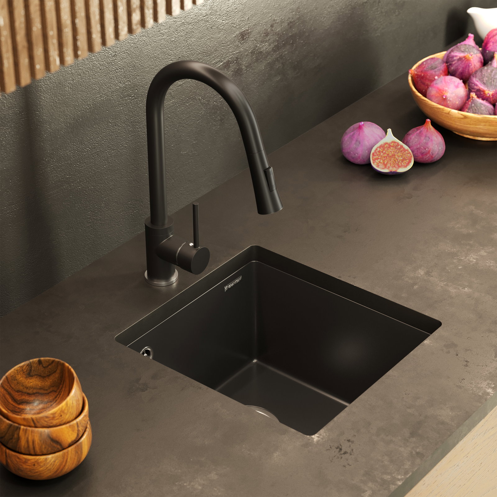 Mini 45 to nowoczesna odsłona zlewozmywaka podblatowego, który wyróżnia się niesamowicie głęboką komorą (24 cm).