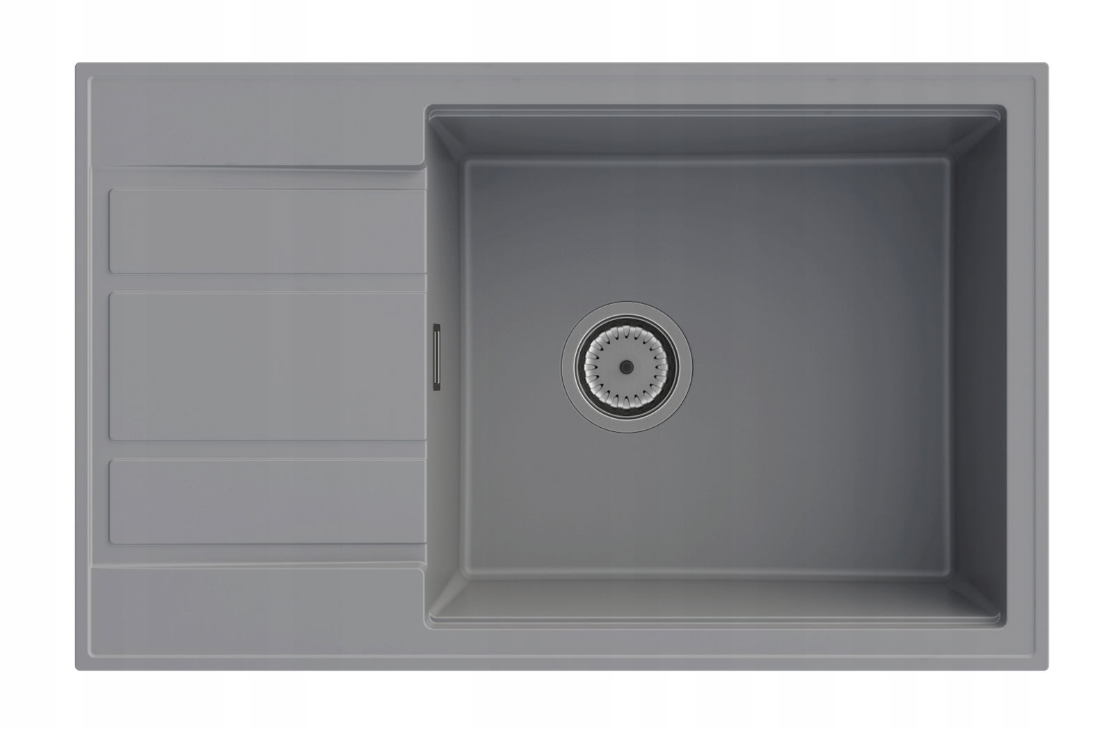 ZLEW GRANITOWY SZARY LOUIS SYFON BAT SPIRAL CHROM