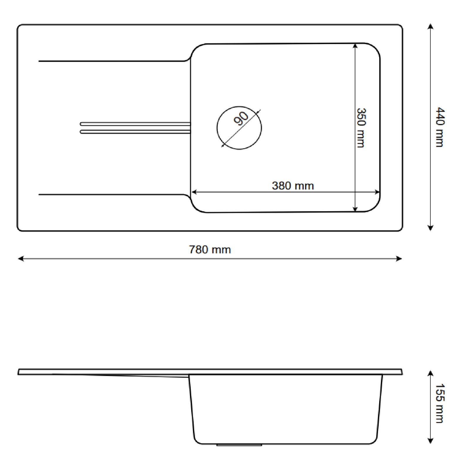 - Średnica odpływu: 90 mm