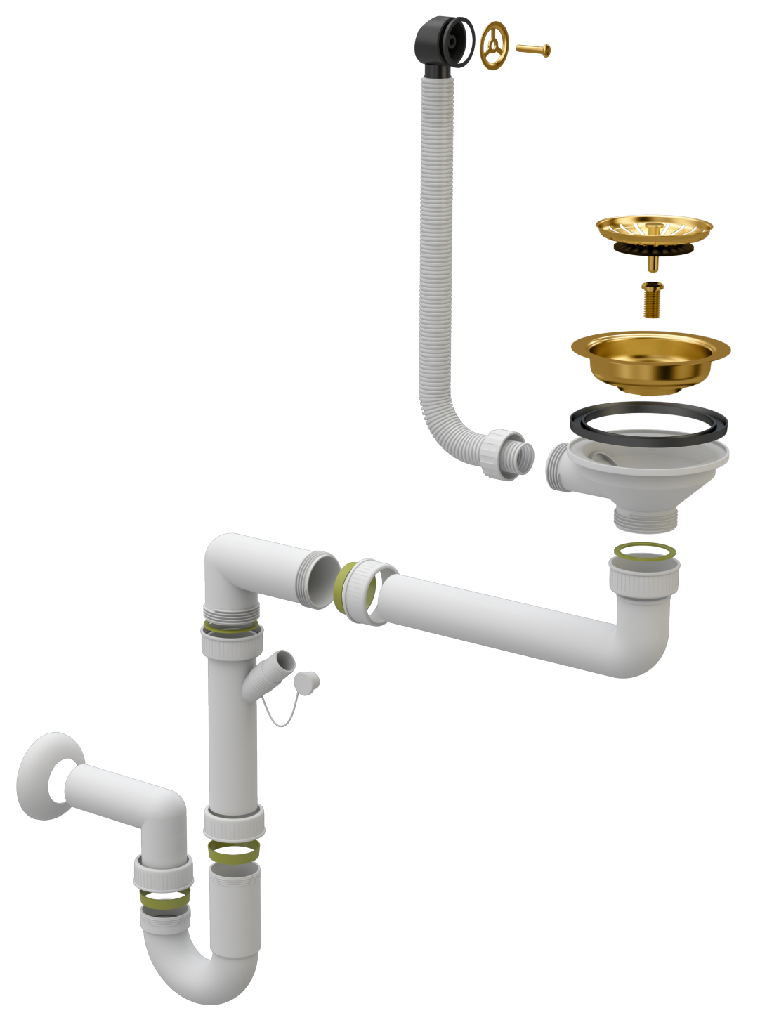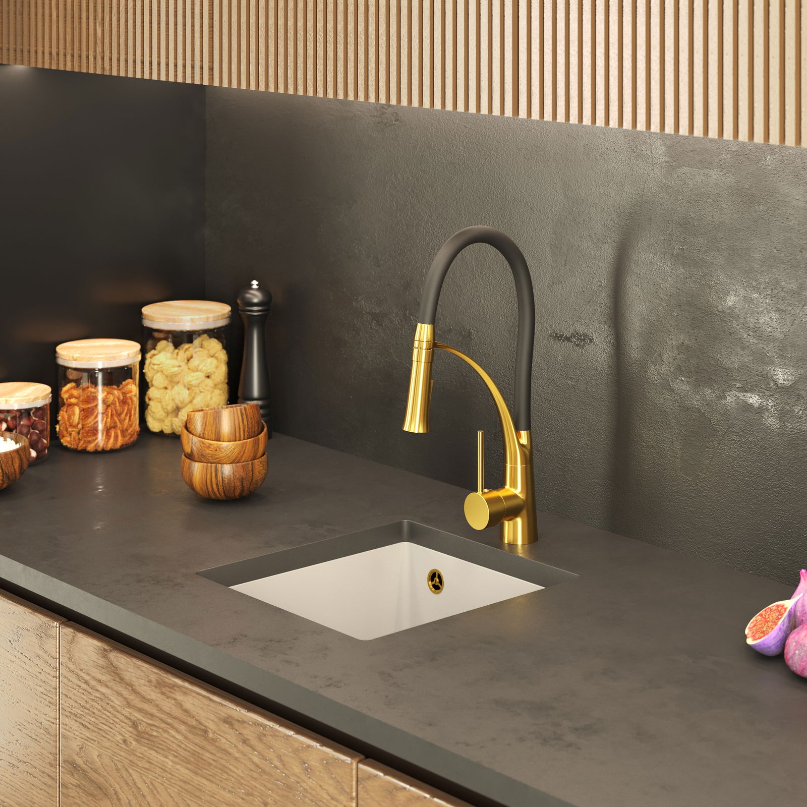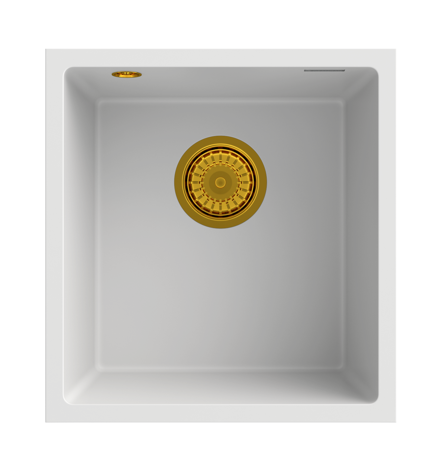 STRUKTURA BIAŁEGO (ZŁAMANA BIEL) ZLEWOZMYWAKA W POŁĄCZENIU Z SYFONEM W KOLORZE ZŁOTYM