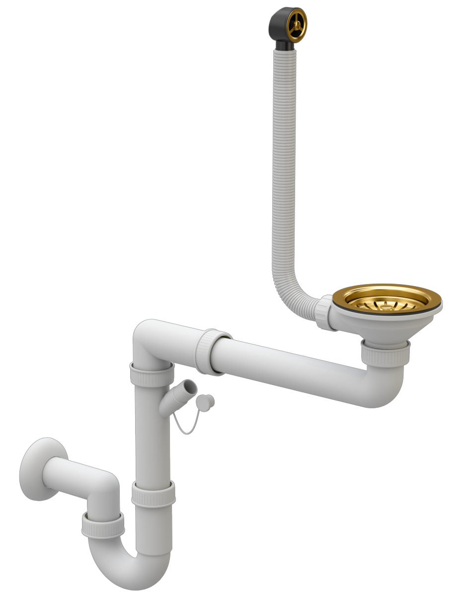 ✅Przyścienny syfon manualny w kolorze ZŁOTYM z możliwością podłączenia zmywarki lub pralki (oszczędność przestrzeni)