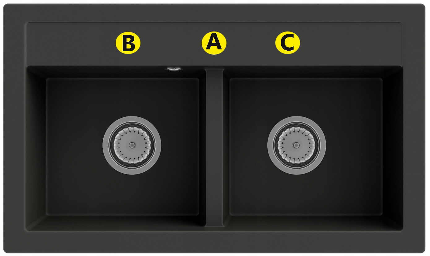 2. ILOŚĆ OTWORÓW W ZLEWOZMYWAKU I MIEJSCE WYKONANIA (A, B, C)