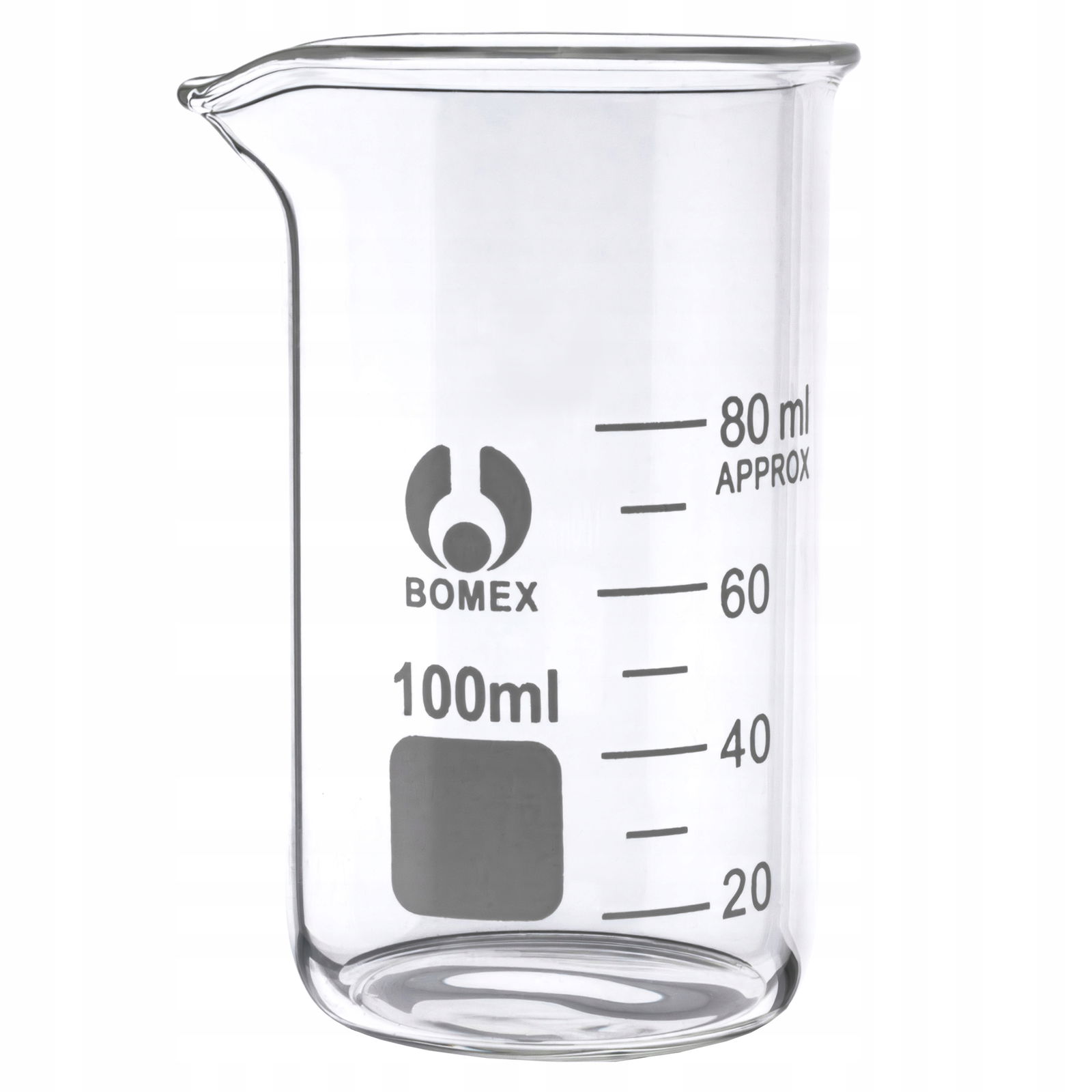Zlewka laboratoryjna szklana wysoka 100 ml Boro 3.3 ze skalą polem opisowym