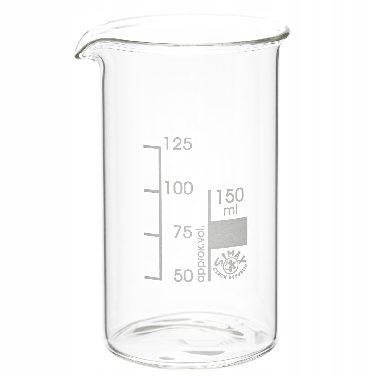 Zlewka laboratoryjna szklana wysoka 150 ml Boro 3.3 ze skalą polem opisowym