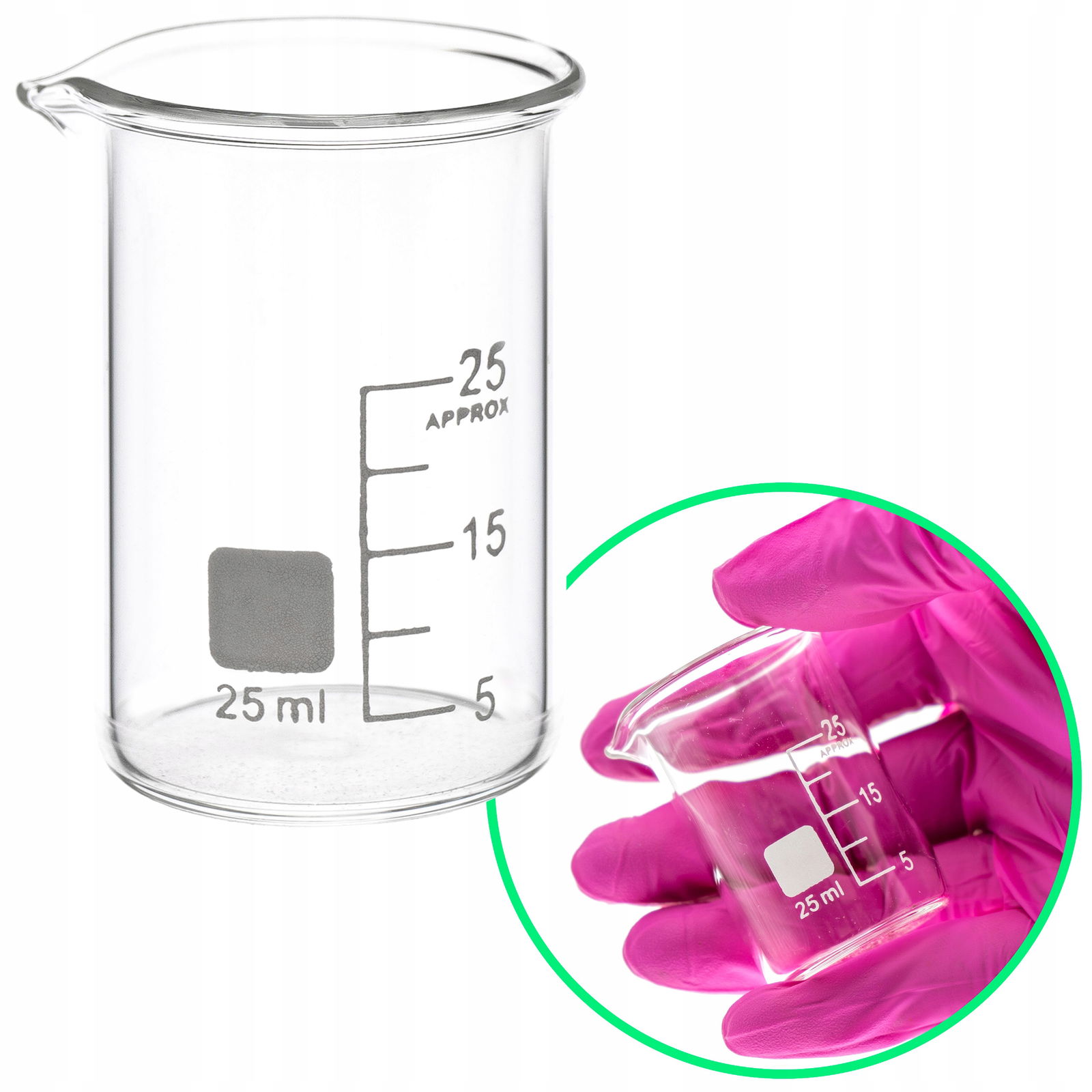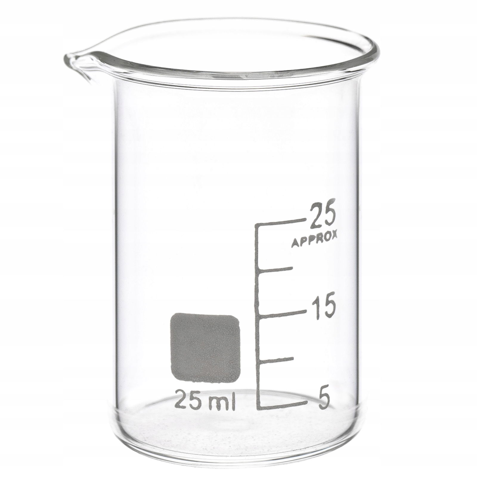 Zlewka miarka niska szklana z wylewem 25 ml szkło borokrzemowe 3.3 skala