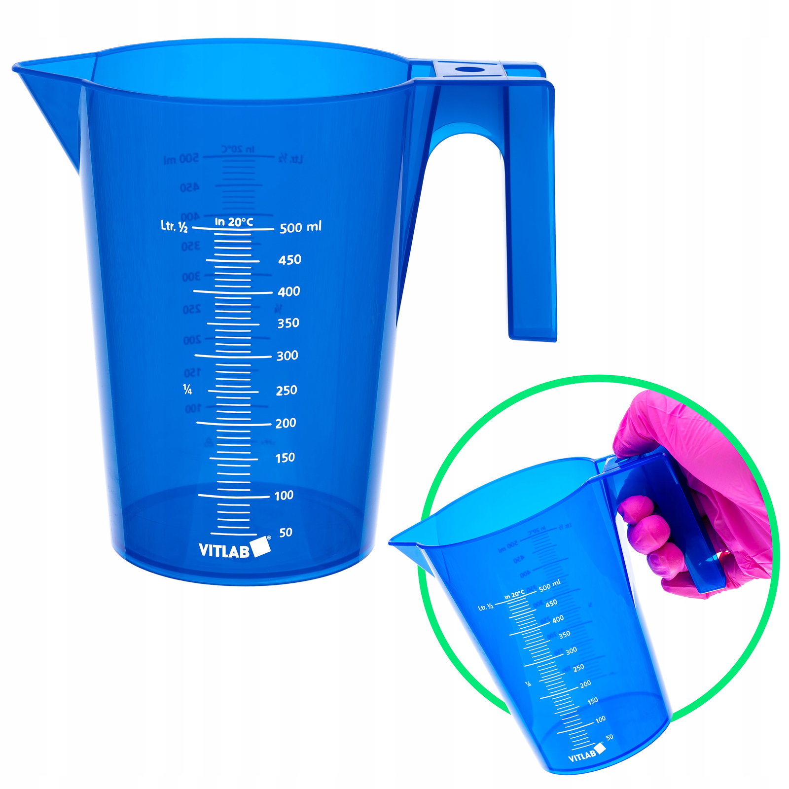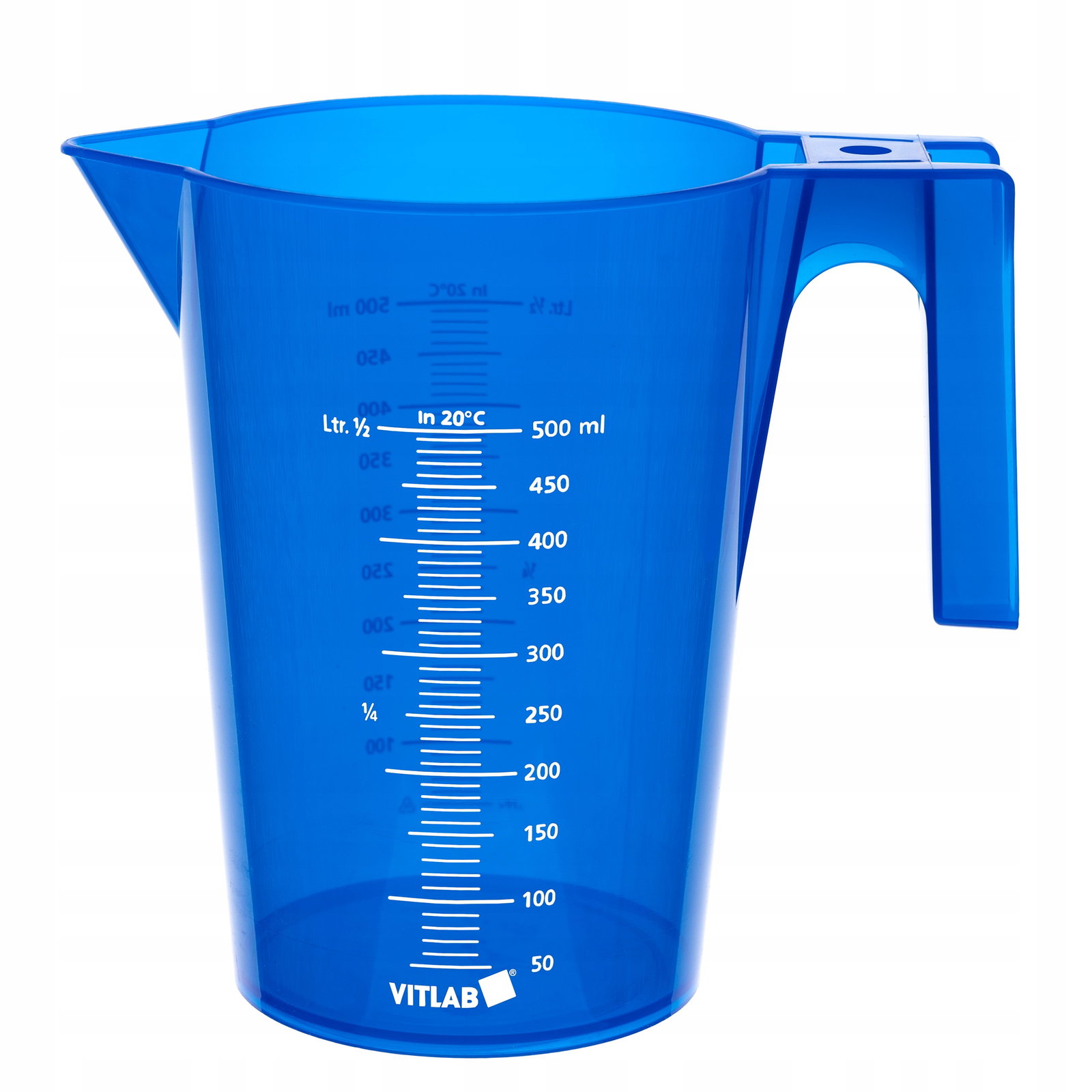 Zlewka miarowa plastikowa 500 ml PP niebieska skala malowana z uchwytem
