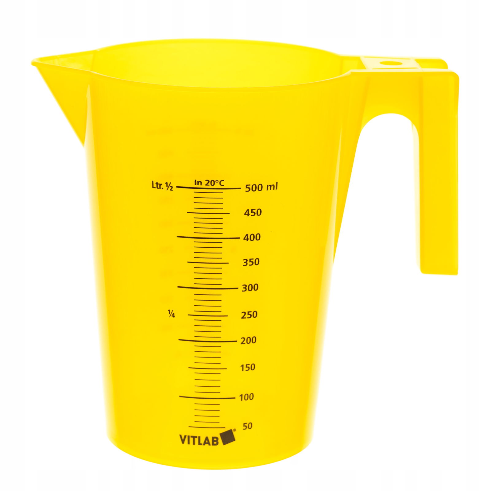 Zlewka miarowa plastikowa 500 ml PP żółta skala malowana z uchwytem