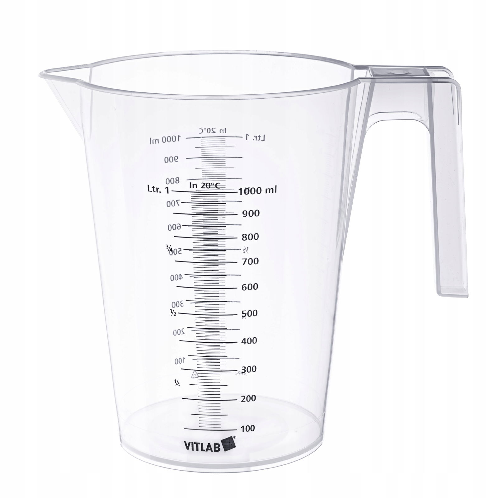 Zlewka niska plastikowa z uchwytem i wylewem 1000 ml skala czarna malowana
