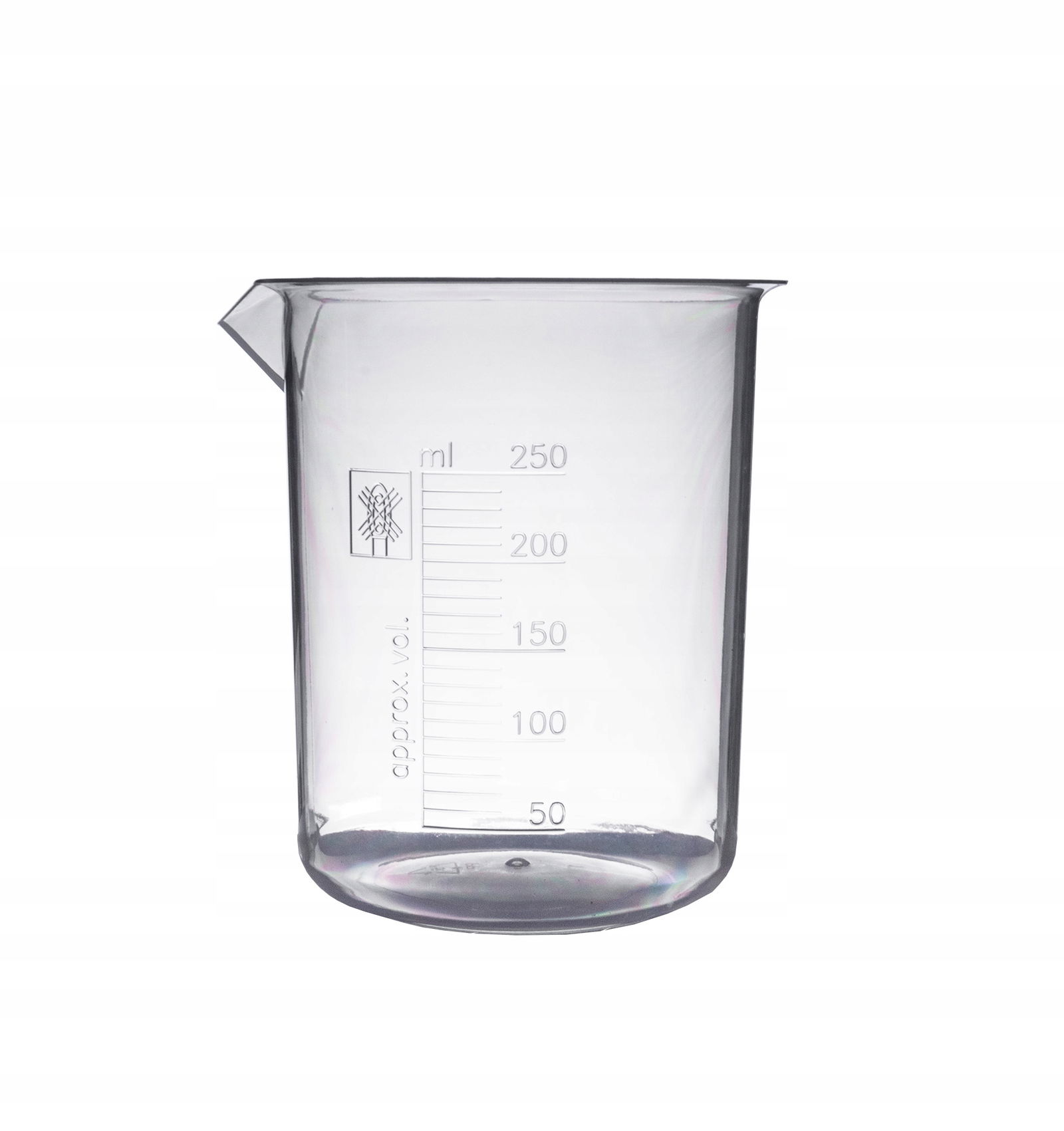 Zlewka plastikowa laboratoryjna z wylewem PP 250 ml skala tłoczona mocna