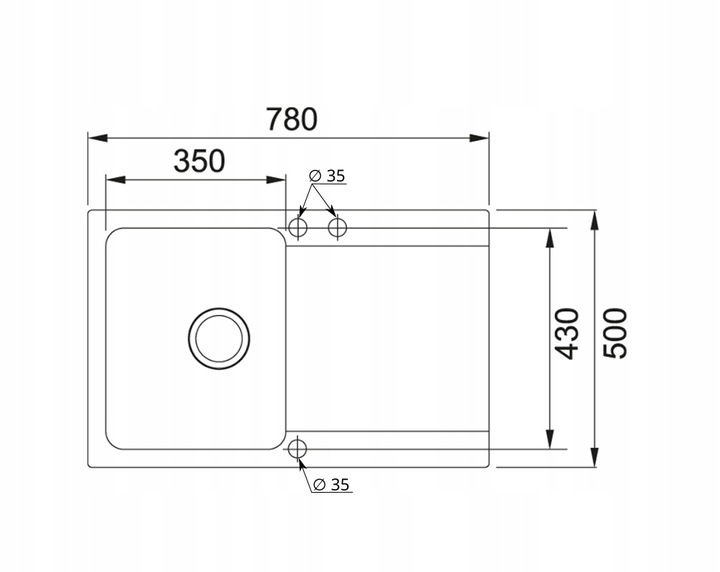 ✅Wymiary zlewozmywaka: 780 x 500 mm