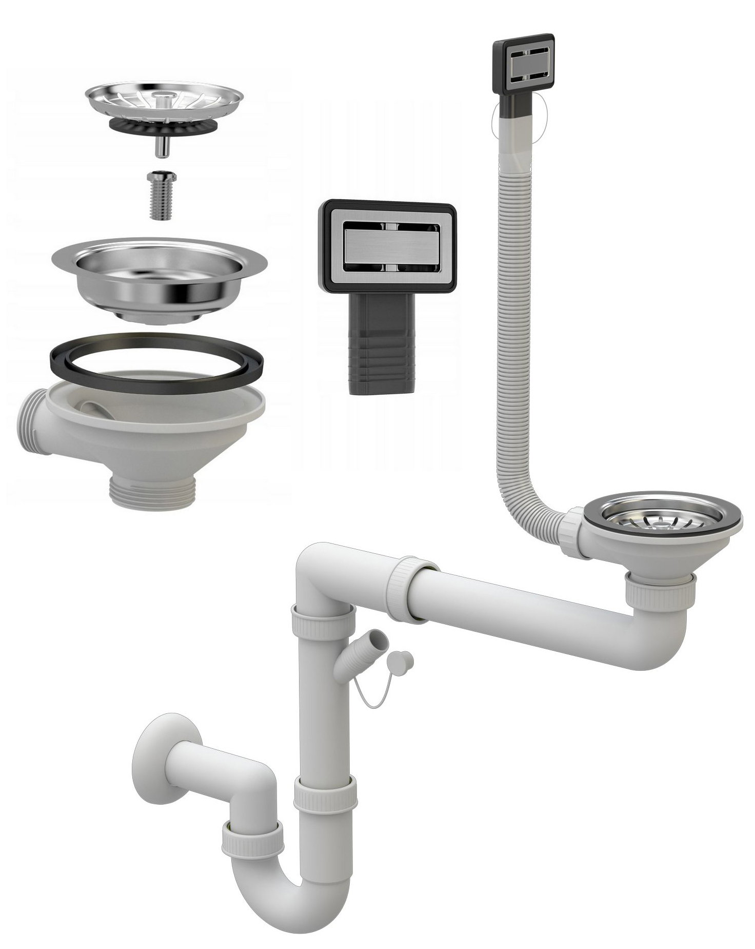 2️⃣JEDNOKOMOROWY SYFON MANUALNY Z PROSTOKĄTNYM PRZELEWEM