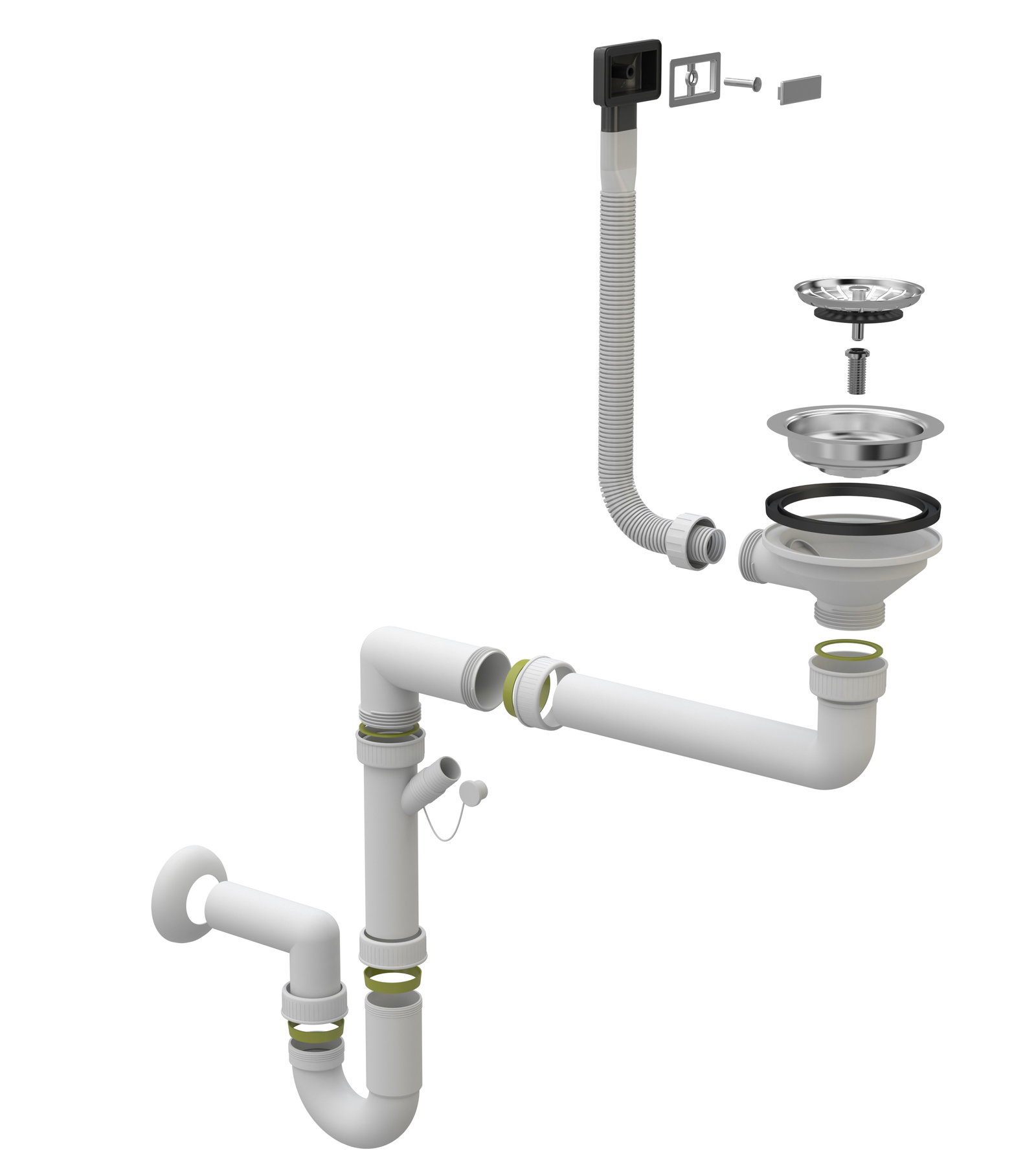 Syfon przyścienny oszczędzający przestrzeń.