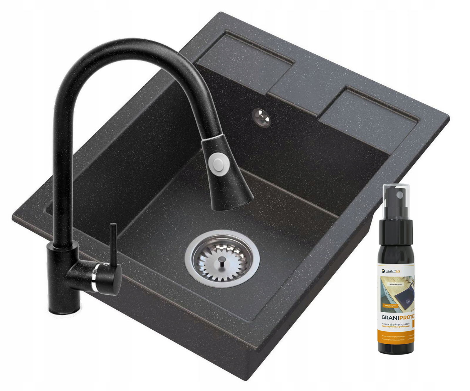 ZLEWOZMYWAK GRANITOWY JEDNOKOMOROWY BEST ZESTAW BATERIA SYFON PRZYŚCIENNY