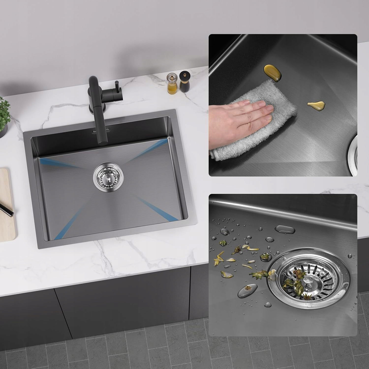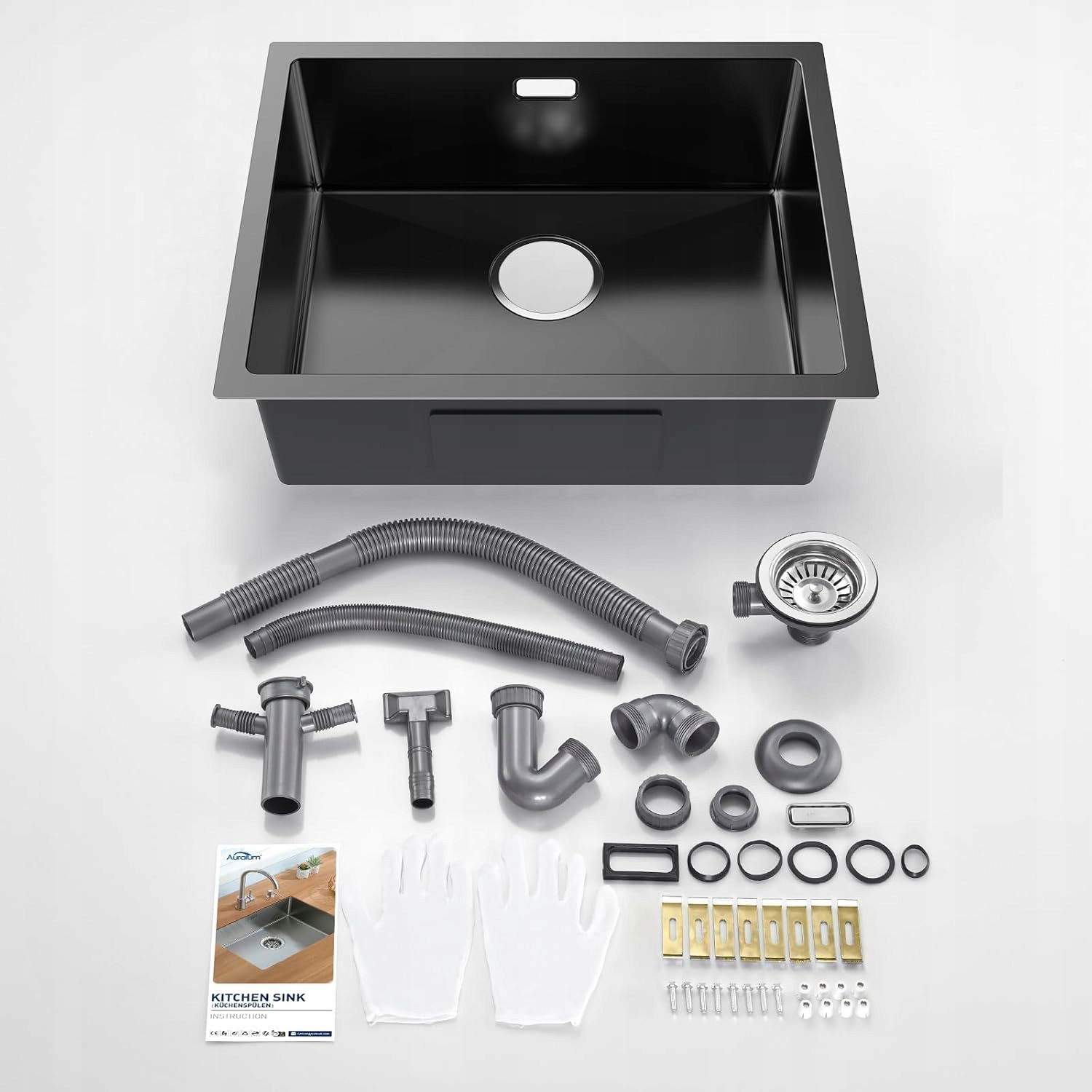 ✅ Zestaw zawiera: 1 x zlewozmywak, 1 x płyta otwierająca, syfon, 1 kosz sitkowy i zestaw przelewowy, zestaw montażowy do instalacji, 1 x rękawica