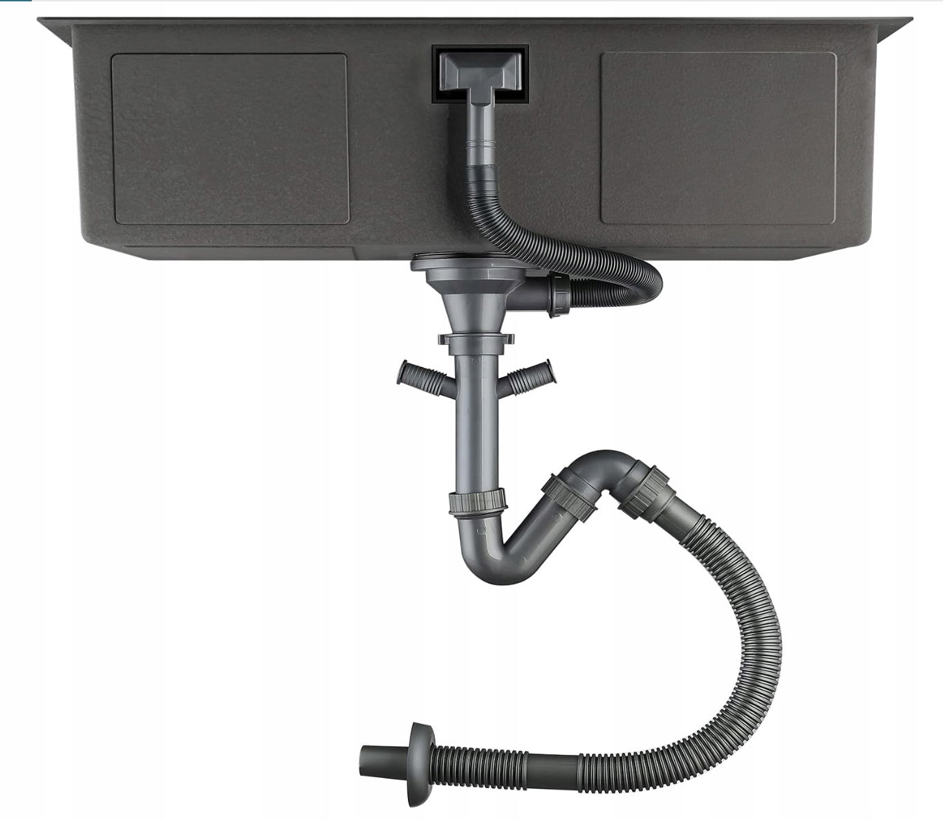 ✅ Wielofunkcyjny syfon – z dwoma przyłączami (np. do zmywarki i pralki)